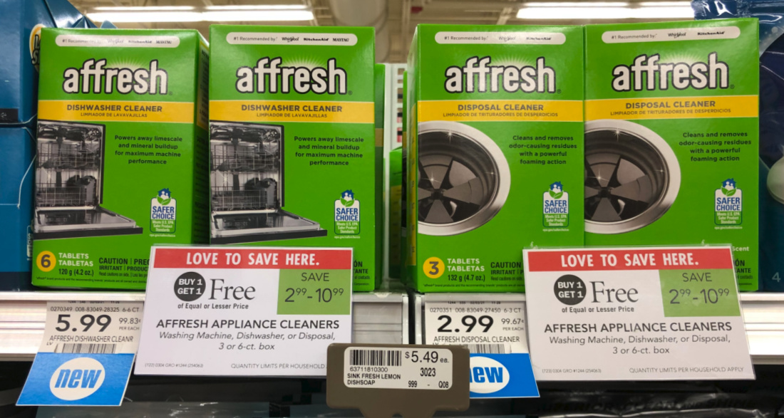 Affresh Appliance Cleaners 3 or 6 ct BOGO 299 1099 11 Affresh Disposal Cleaner Ibotta Deposit 11 Affresh Dishwasher Cleaner Ibotta Deposit 11 Washing Machine Cleaner Ibotta Deposit As low as 50 each. A sticky odor causing residue can form in machines when too much or the wrong type of detergent is used. Affresh Dishwasher cleaner is a powerful solution used to help remove residue and eliminate odour.