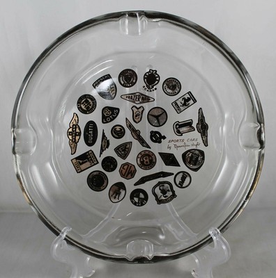 Norma Jean Wright Sports Cars Ashtray Vintage Mid Century Glass Auto Logos Ebay